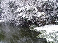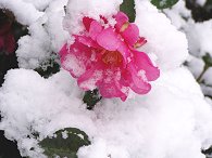 暖冬と言われている今年の冬ですが、昨日から冬将軍がやってきました。 めったなことでは、雪が降らない南国の美浜にも雪が積もりました。今朝7時頃から降り続き、5cm以上は積もったでしょうか。 娘は喜んでこしらえた雪だるまを、ユッキーと名付けてウッドデッキに飾っていました。 実家の畑わきのサザンカの花が雪をまとって、より一層きれいに見えました。 (2003.12.20) |