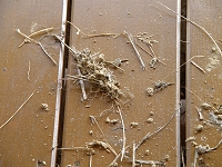 少し巣が出来てきたかなと思っていたある日、下を見るとせっかく作った巣の一部が落ちています。(下の写真)