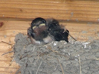 さて、ツバメが巣材探しに行って留守な間に、まだ固まっていない巣に乗っかって壊してしまっている不届き者とは誰か?