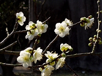 まだまだ春には遠い感じですが、この数日のぽかぽかした陽気に誘われて、近所の”花の寺”心月斎に行ってみました。 たくさん植えられた桜で有名ですが、ウメの花がきれいに咲いていました。 おめでたく、紅白のウメをならべてみました。 (2004.2.21) |