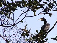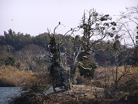 国指定天然記念物の鵜の繁殖地”鵜乃山”には、最近まであまり鵜がいませんでした。彼らは、美浜の中で3カ所ぐらいを転々としているようで、今でも菅刈池の方にたくさんいます。 今日は、鵜乃山・鵜の池の様子を見に行ってみました。 ジョイフルファーム鵜の池の北の道を少し歩くと、鵜乃山の展望台に出ます。 あたりは、鳥のふん臭いが立ちこめていますが、目前にカワウの巣を見ることができます。 さすがに、子育てのシーズンだけあって、頭ボサボサの幼鳥もいましたし、せっせと巣作りに励む親鳥も見られました。 (2004.2.14) |