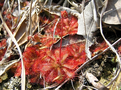 | 左:コモウセンゴケ 上:コモウセンゴケの花 |