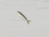 | 風の弱い穏やかな日には、美浜のトビウオ(ボラ)が連続ジャンプを決めて見せてくれます。 ポチャン!ポチャン!とリズム良く跳んでくれるので、こんな写真が撮れました。 (2006.11.4) |