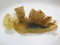 また、メリベウミウシを自宅に持ち帰り写真撮影をしていたところ、時間が経つと体から伸びるヒダヒダを自切しだしたのです。水質の悪化が原因でしょうか? 後日同所で、観察会のメンバーともウミウシ探しをし、大いに盛り上がりました。