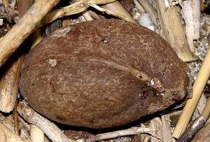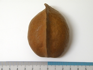 2009年は運が悪かったのか、潮の流れが悪かったのか、黒潮の流れが運ぶ南方系の種子やルリガイ、ギンカクラゲ達とは、出会う機会が少なかったですが、年末に近くなってようやくうれしい出会いがありました。 “光の国”ならぬ“南の島”から、海流に乗って冨具崎海岸までやって来たのは、ウルトラマンの顔のような形で知られるサキシマスオウの実でした。 (写真左上) サキシマスオウは、日本では奄美大島以南の南西諸島に自生するアオギリ科の常緑高木で、板状に大きく発達する根(板根と呼ばれる)が特徴的な植物です。 また、先に述べたように果実の形も特徴的で、大きな物だと6cm以上のものがあり、ドライフラワー用の材料としてエキゾチックナッツの名前で売られていることがあります。 (写真左下) サキシマスオウの実は、今までに何度か浜で拾ったことがありましたが、冨具崎海岸で拾ったのは初めてのことです。 大分ボロボロになっていましたが、そんな南の島の植物の実が、この美浜までたどり着いてくれたことが、何だかうれしく感じられました。